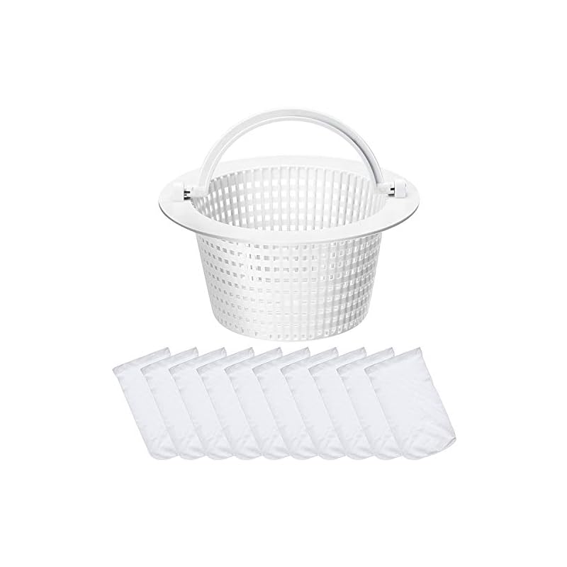 Replacement Skimmer Basket Strainer Basket Small Standard Size with 10 Pool Skimmer Socks, Durable Elastic Nylon Fabric…