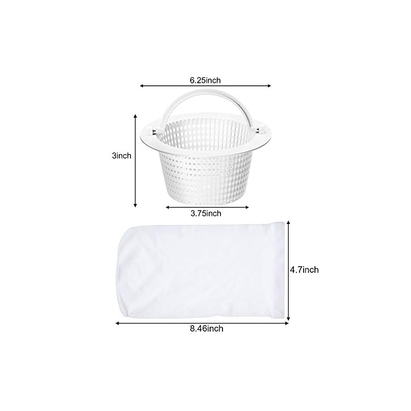 Size: top inner diameter of the skimmer basket is approx. 4.875 inches, top outer diameter is about 3.75 inches, the height is about 3 inches; Pool skimmer socks: 21.5 x 12 cm/ 8.46 x 4.7 inches (L x W)