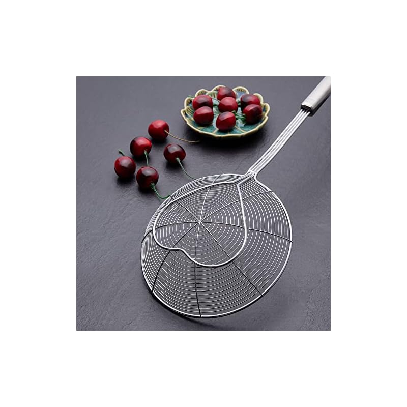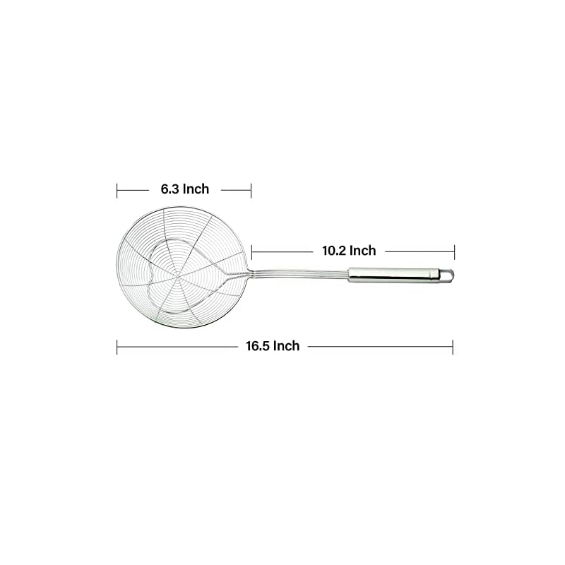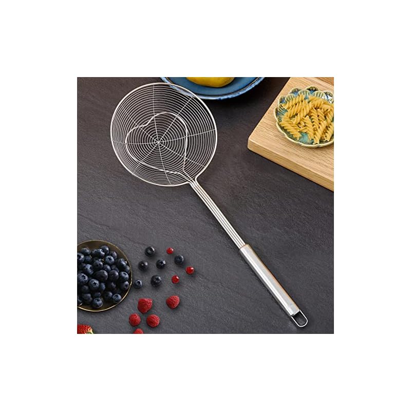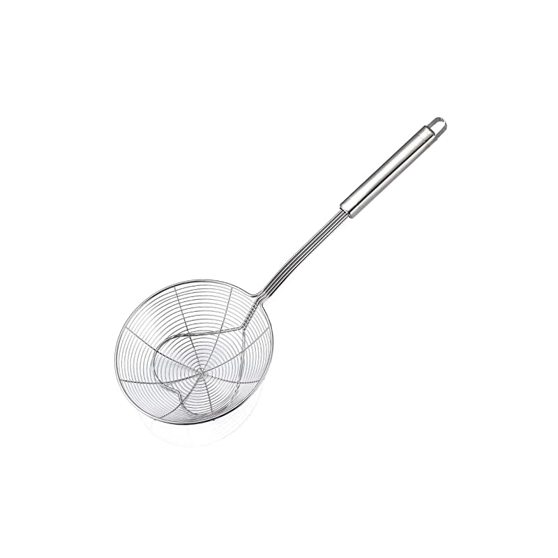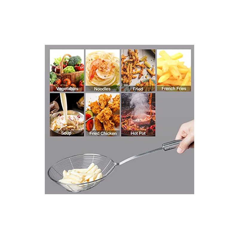 Bottom thickened coil reinforcement design enhances the bearing capacity of food strainer, with a purpose to permit you to quickly and massively scoop up your food being fried and cooked